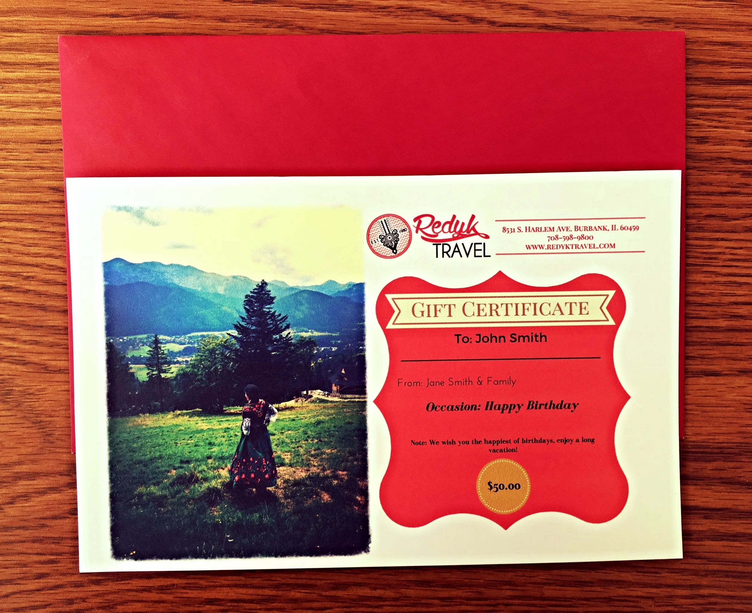 GIFT CERTIFICATES The gift of time is the best gift anyone could receive! This holiday season give your loved ones what they really want a chance to explore the world, a memory to last a lifetime, but most of all a chance to relax and get away from it all! View fullsize View fullsize View fullsize